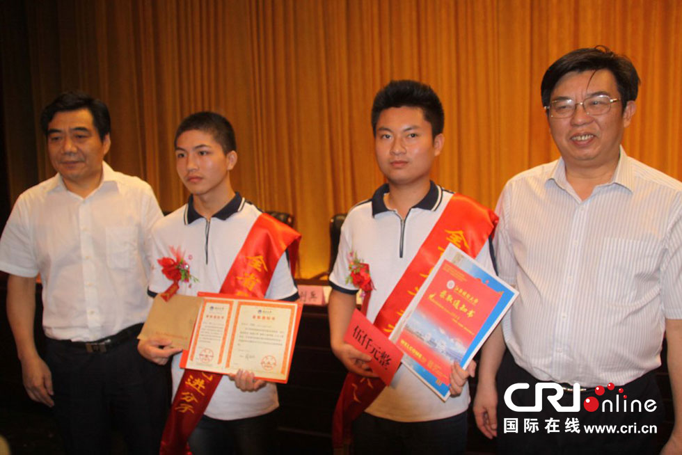 在当天的命名表彰大会上,“夺刀少年”柳艳兵、易政勇领到了大学录取通知书。据悉,柳艳兵被南昌大学建筑系土木工程专业录取,易政勇则被录取到江西财经大学工商管理系。图片来源:邹海斌/CFP