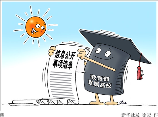 同时,2014年10月底前,部属高校要在学校门户网站开设信息公开专栏,统一公布清单各项内容。不仅如此,教育部将在部门户网站集中添加教育部直属高校信息公开专栏链接,为社会公众查询提供统一入口。