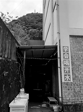 学校水房旁贴了一行大字:学会喝开水。因为很多孩子刚来时,不管多冷的天,对着水龙头就喝。蒋菡 摄