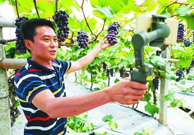 在乌兰察布市察右后旗,青年主播利用网络直播方式销售农产品。新华社发