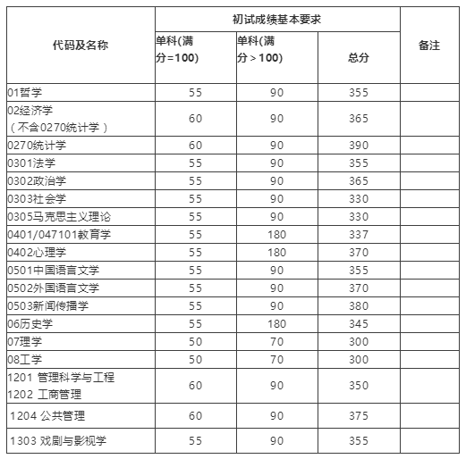 1. 上述基本要求是我校各学科的最低复试要求。招生院系在学校公布的初试成绩基本要求基础上,结合本单位生源和当前招生计划等情况,根据考生的初试成绩择优确定复试名单。考生成绩须达到招生院系的复试要求,才能进入复试。