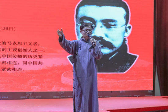 沈阳航空航天大学“沉浸式红色经典故事分享首演活动”中,学生讲述李大钊的故事。沈阳航空航天大学供图