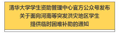 清华大学设立临时困难补助
