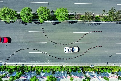 在重庆市,自动驾驶汽车在真实道路上挑战“S型道路”。新华社发