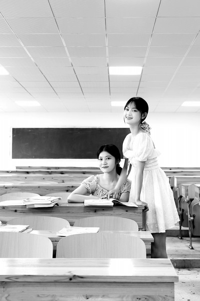 2021年6月26日,湖南交通工程学院学生在教室拍照留影,给青春留下美好的记忆。李琼摄/光明图片