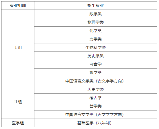 3.考生仅可选择一个专业组进行报考,各专业组单列计划,单独排队入围及录取。医学组在北京大学医学部招生代码下录取。