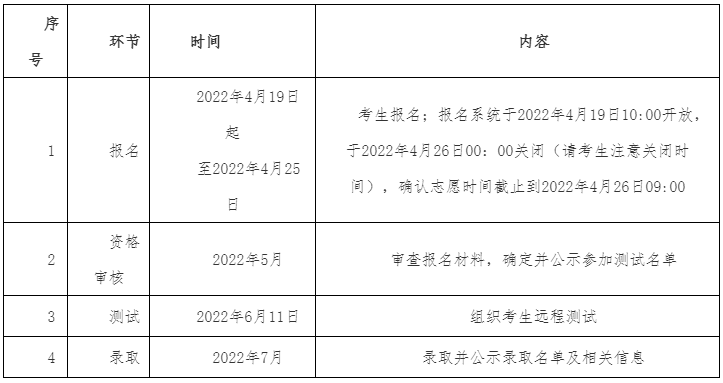2022年高校专项计划招生工作程序见下表: