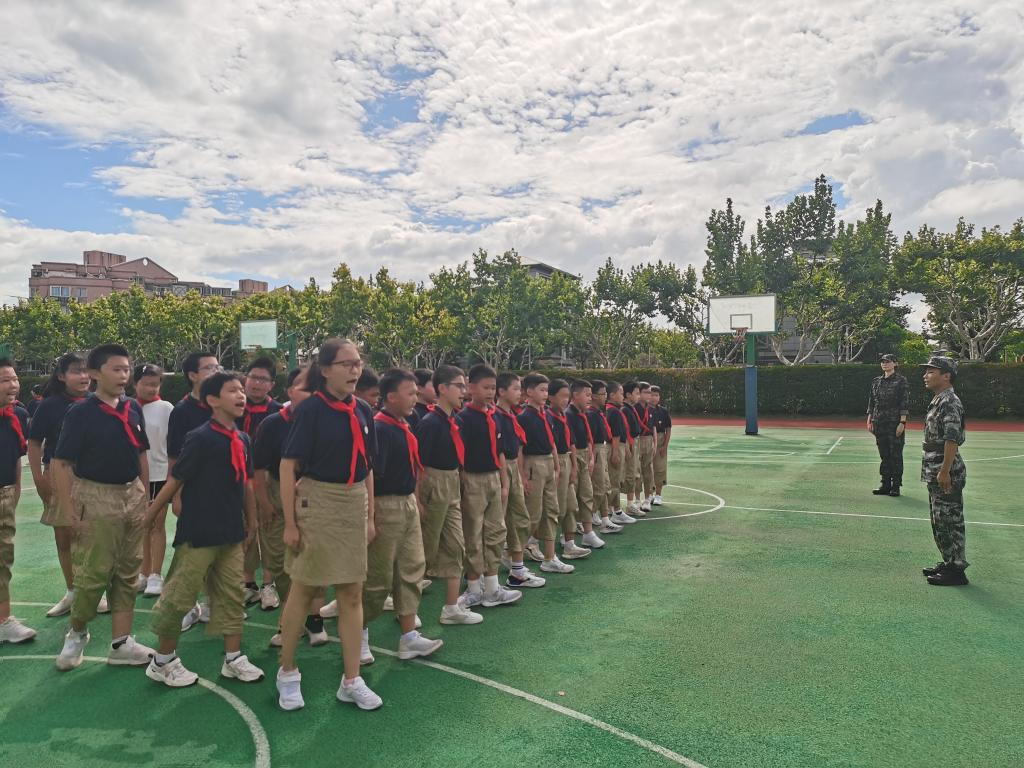 9月3日,高帅旗(右一)入学后被借调至上海一所中学带中学生军训。受访者供图