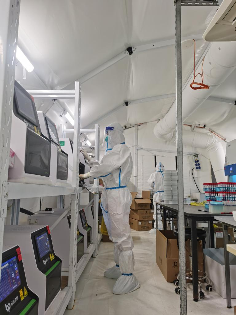 今年暑期,赵俊伟在核酸检测实验室上班。受访者供图