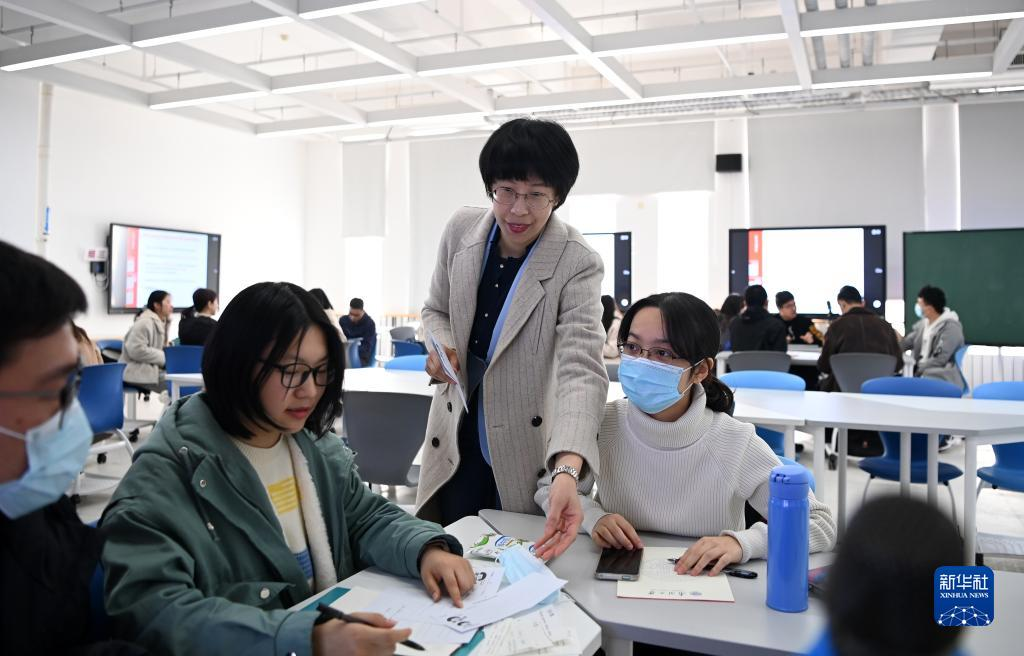 老师和学生在南开大学的研讨型智慧教室内交流(2021年3月22日摄)。新华社记者 李然 摄
