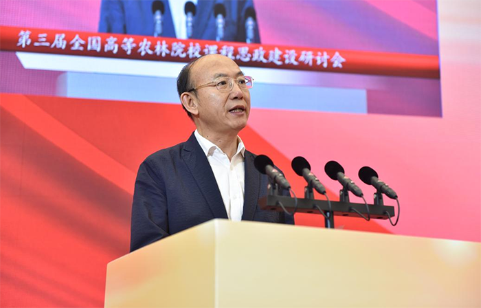 教育部高等教育司二级巡视员、人文社科教育处处长张庆国表示,高等农林院校课程思政联盟在成立以来两年多的时间内,在课程思政建设方面进行了富有成效的探索,提供了高等农林院校的课程思政建设方案。他就如何推进农林院校课程思政高质量建设提出了三个方面的交流意见。一是深刻认识新时代课程思政建设的重要意义,发挥所有课程的育人功能,使各类课程与思政课程同向同行,形成协同效应,认真回答好“强国建设、高教何为”这一时代命题,以高等教育高质量发展支撑引领中国式现代化建设。二是准确理解课程思政的丰富内涵,要深入挖掘各类课程和教学方式中蕴含的思想政治教育资源,防止“表面化”“硬融入”,让思政教育不但入耳、入眼,更要入脑、入心,真正实现培根铸魂、启智润心。三是深入推进课程思政高质量建设,高等农林院校课程思政联盟要切实发挥作用,不断推进课程思政建设创新发展,加大力度深入探索课程思政高质量建设的模式和途径,推动课程思政走深走实。张庆国表示,课程思政建设责任重大、使命光荣,各高校要全面贯彻落实习近平新时代中国特色社会主义思想和党的二十大精神,深入开展课程思政高质量建设,全面提高人才自主培养质量,为党育人、为国育才,为以中国式现代化全面推进中华民族伟大复兴做出新的更大贡献。