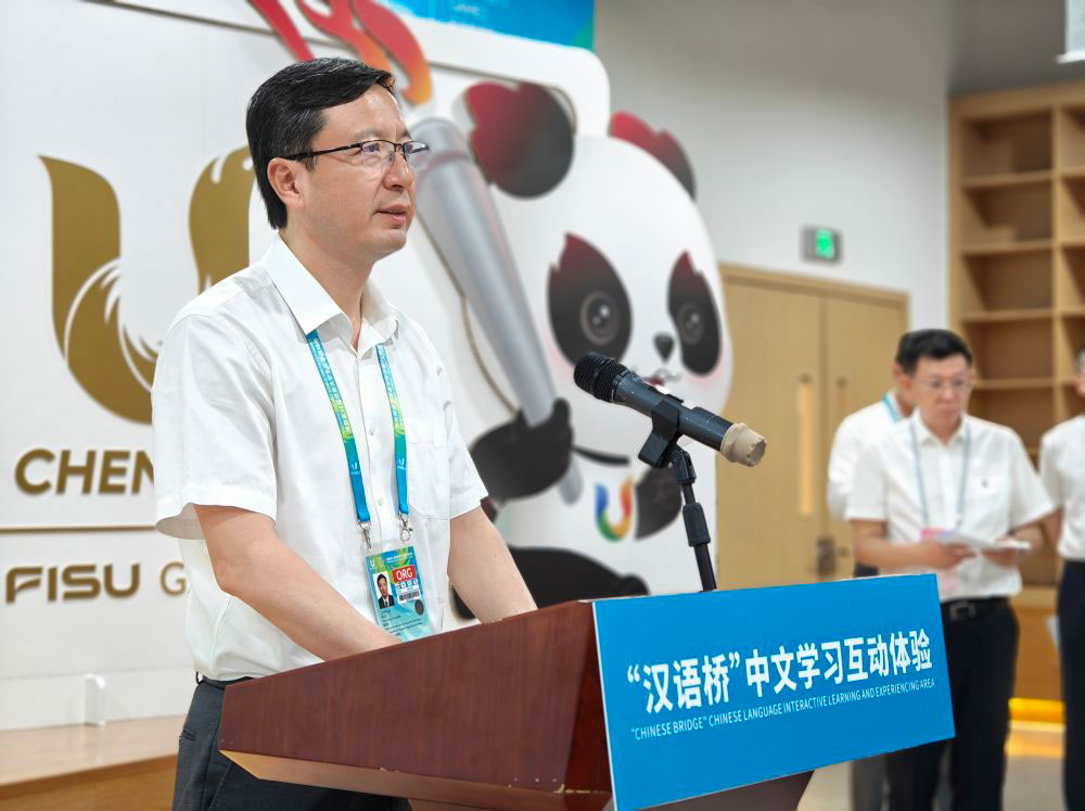 新华社成都7月26日电(记者郑直、季嘉东)在成都第31届世界大学生夏季运动会开幕前夕,由教育部中外语言交流合作中心、中国大学生体育协会和成都大学共同主办的“汉语桥”中文学习互动体验区26日在成都大运村正式揭幕。