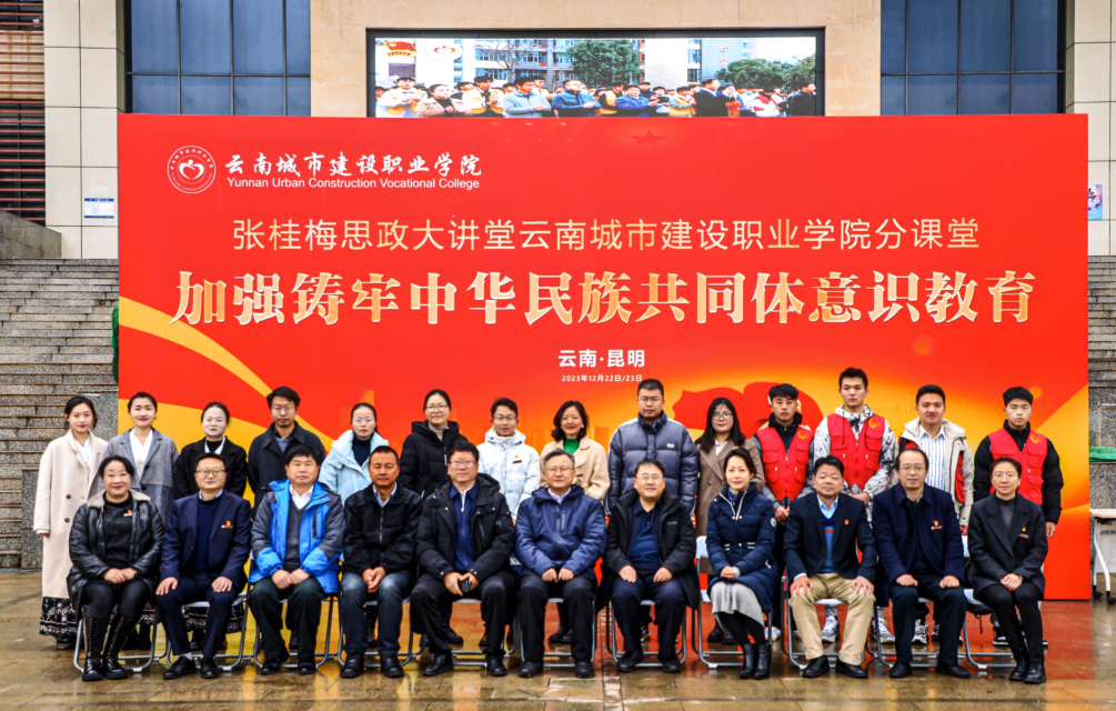 2023年12月22日至23日,“张桂梅思政大讲堂云南城市建设职业学院分课堂”第五讲《加强铸牢中华民族共同体意识教育》在云城建举办。分课堂由学校党委主办,马克思主义学院承办,学校铸牢中华民族共同体意识研学馆协办,在为期2天时间里,开展了听评思政课、座谈、讲座等系列活动,国内知名专家和主管部门领导应邀参加。