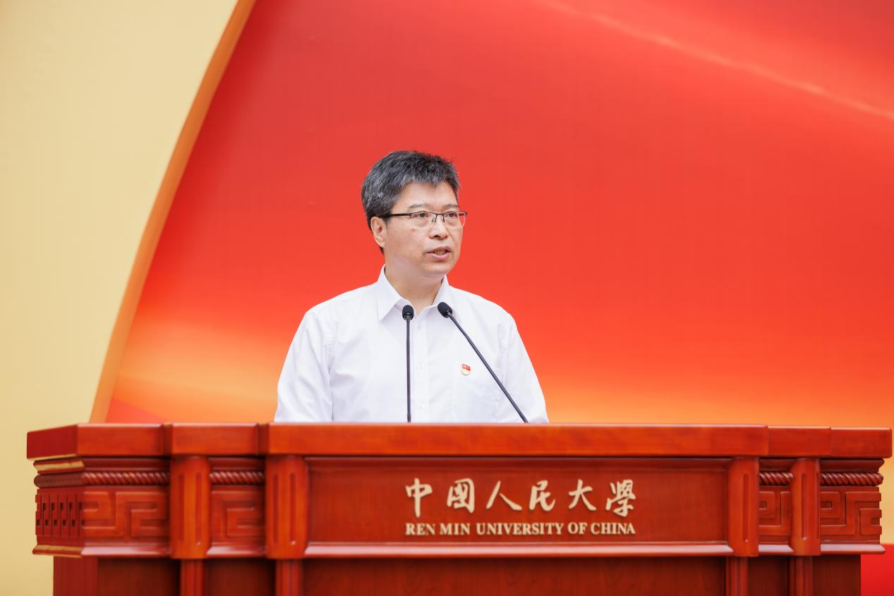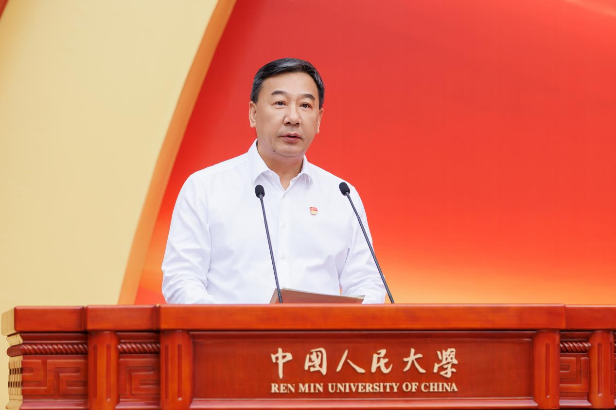 中国人民大学党委书记张东刚出席并讲话,校长、党委副书记林尚立主持,党委常委吴付来、郑水泉、齐鹏飞、王轶、王易、冯仕政、郑新业、支晓强、青格勒图出席。