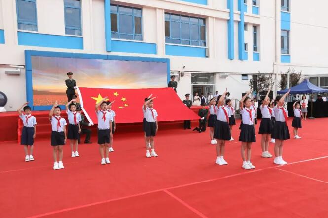 开学前不久,上地实验小学得到天安门管委会的批复,同意把2023年10月13日建队日这一天在天安门广场升起的国旗授予学校保存。在开学典礼上,解放军战士擎旗入场,庄严神圣,少先队员代表伴着这面国旗,热情献词,表达各自的奋斗之心和报国之情。