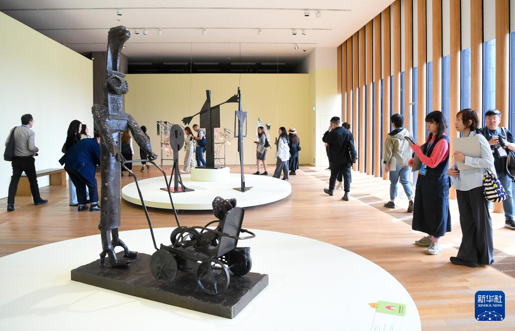 3月13日,媒体记者在拍摄毕加索的青铜雕塑作品。新华社记者 陈铎 摄