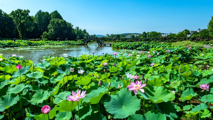 现景区全长6.27公里,拥有850亩生态水面和1031亩绿化,形成“一心三线”格局:以汉长安城遗址为核心,步行、观光车、游船三条游览线路。