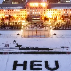 大雪过后,哈尔滨工程大学的军工操场宛如一张巨幅画布。来自18个学院的1600余名师生迅速行动,分工协作。经过一个多小时奋战,一艘长196米、宽40米的“航母”破“雪”而来,“滨滨”“妮妮”的形象也逐渐清晰。从高空俯瞰,“滨滨”滑冰起舞,“妮妮”脚踏雪板腾空跳跃,仿佛在挥手问好。