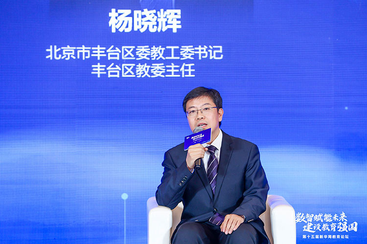 数字化时代,多地积极推进数字教育战略,探索科技与教育深度融合。杨晓辉介绍了丰台区推进数字教育战略的举措。