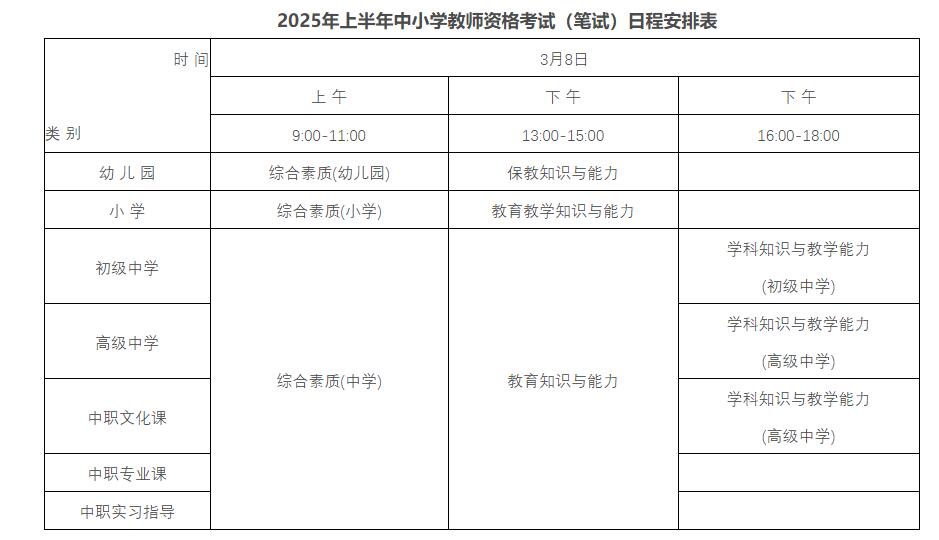 根据教育部教育考试院统一部署,现将安徽省2025年上半年中小学教师资格考试笔试工作有关事项公告如下: