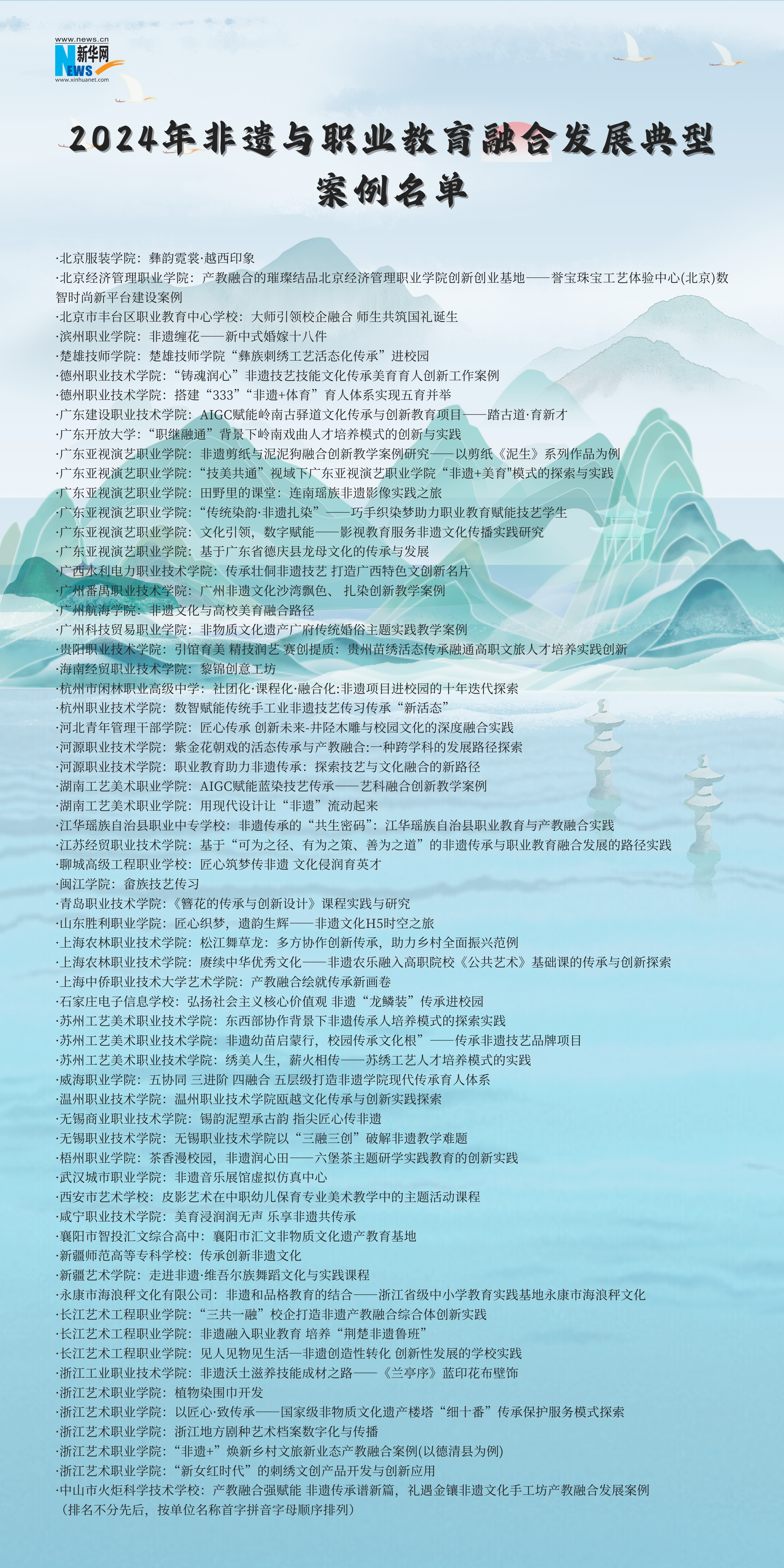 现将入选“2024非遗与职业教育融合发展典型案例”名单公布如下: