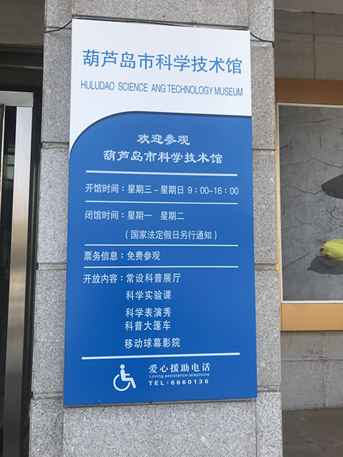 葫芦岛市科技馆现隶属于葫芦岛市科学技术协会,坐落于葫芦岛市龙港区海星路3号,占地面积10000平方米,建筑面积7000平方米。设有一楼为常设展厅、二楼包括自然生态科普展厅和临时科普展厅、球幕影院1个、4K科普影厅1个、科学实验室1个。常设展厅2420平方米,主要展示内容有常设互动展品、飞机模型、展示教育展品共计96件,其中互动展品65件。自然生态科普展厅530平方米,主要展示663件森林、湿地、草原等区域的动植物标本。球幕影院45平方米,有70个座位,现有18部科普影片。4K科普影厅72平方米,有52个座位,现有15部科普影片。葫芦岛市科技馆每周5天不间断向社会公众开放。