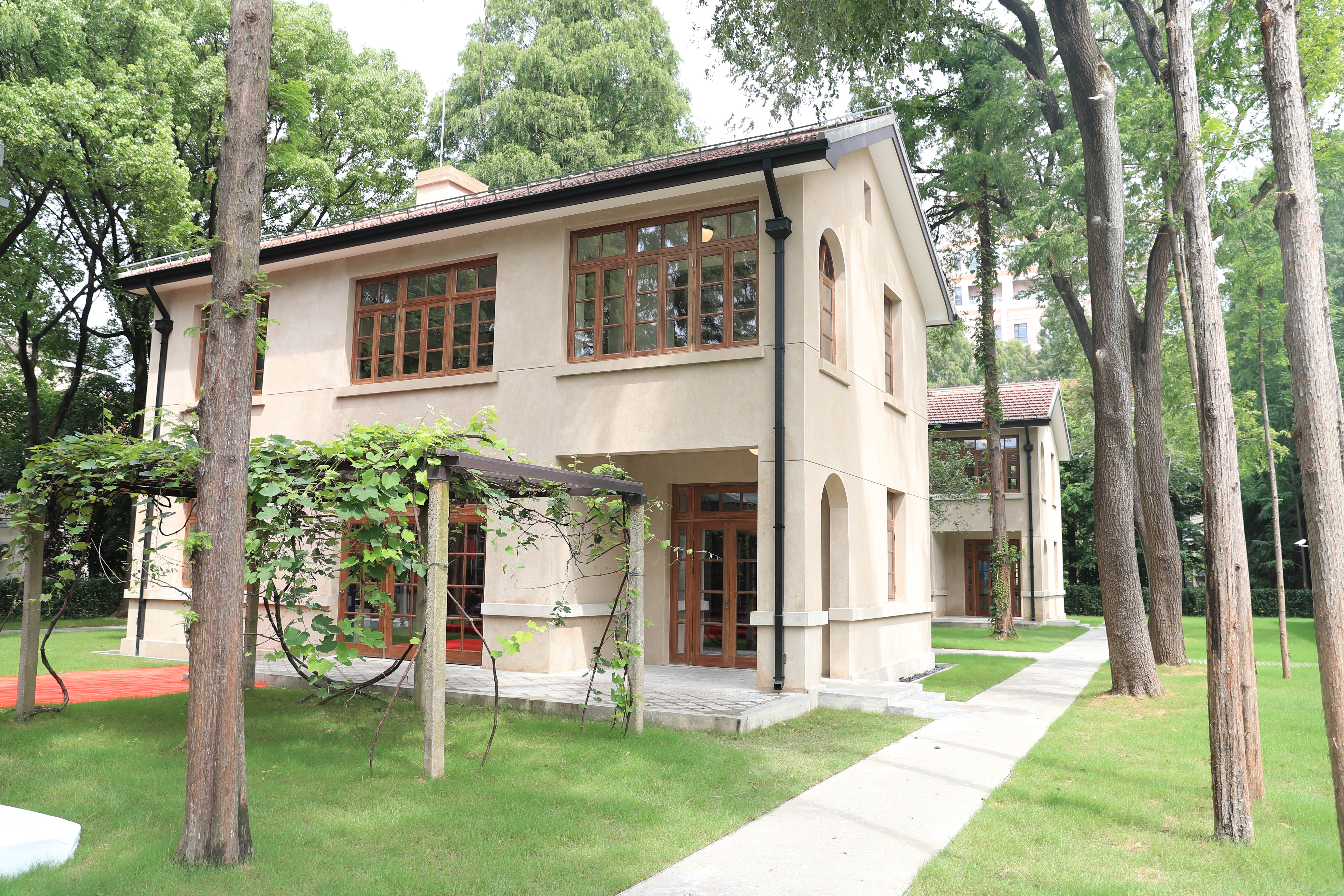 玖园,复旦大学第九宿舍的雅称,这里居住过多位名师大家。2021年7月,为庆祝中国共产党成立100周年,位于复旦玖园的苏步青旧居、谈家桢(陈建功)旧居修缮一新,与《共产党宣言》展示馆交相辉映,将信仰、爱国、科学,融为一体,构成“玖园爱国主义教育建筑群”。《共产党宣言》展示馆(陈望道旧居)主要介绍了《共产党宣言》诞生、中译、传播和影响,以及陈望道追寻真理、信念如磐的一生。苏步青旧居展陈以“数坛宗师 爱国敬业”为主题,展现了苏步青从一名乡间放牛娃成长为一名数学家、教育家和社会活动家的102年精彩人生。谈家桢(陈建功)旧居展陈以“坚持真理 科学报国”为主题,采用主题展陈为主线、时间先后为辅线的形式展陈,展现谈家桢的学术成就、学科贡献等。旧居二层还专设“陈建功展厅”,以图文、多媒体等形式介绍著名数学家陈建功的生平事迹与贡献。