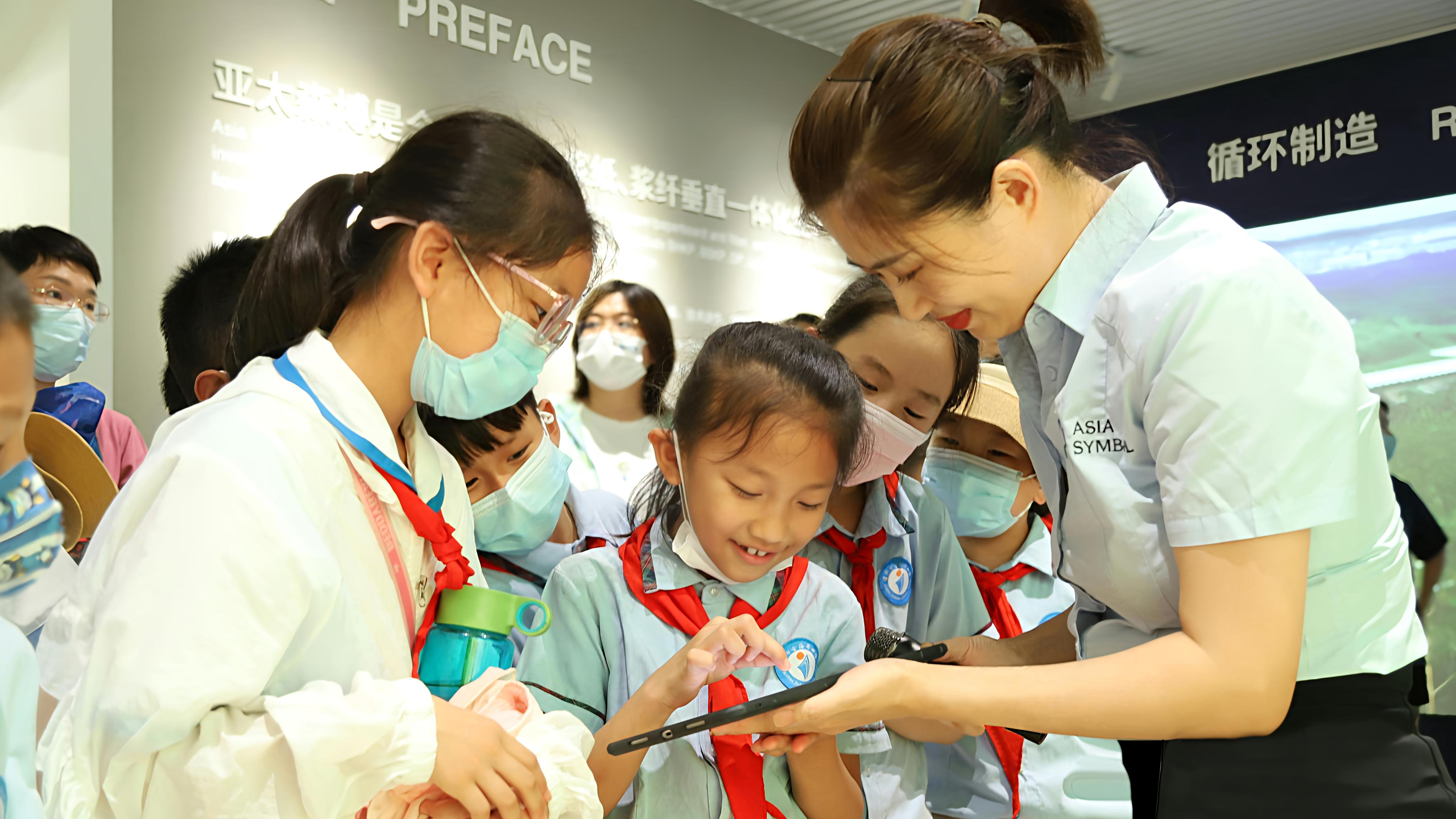环保科普参观:学生走进亚太森博,实地参观生态文明科普展厅及现代化自动生产线。