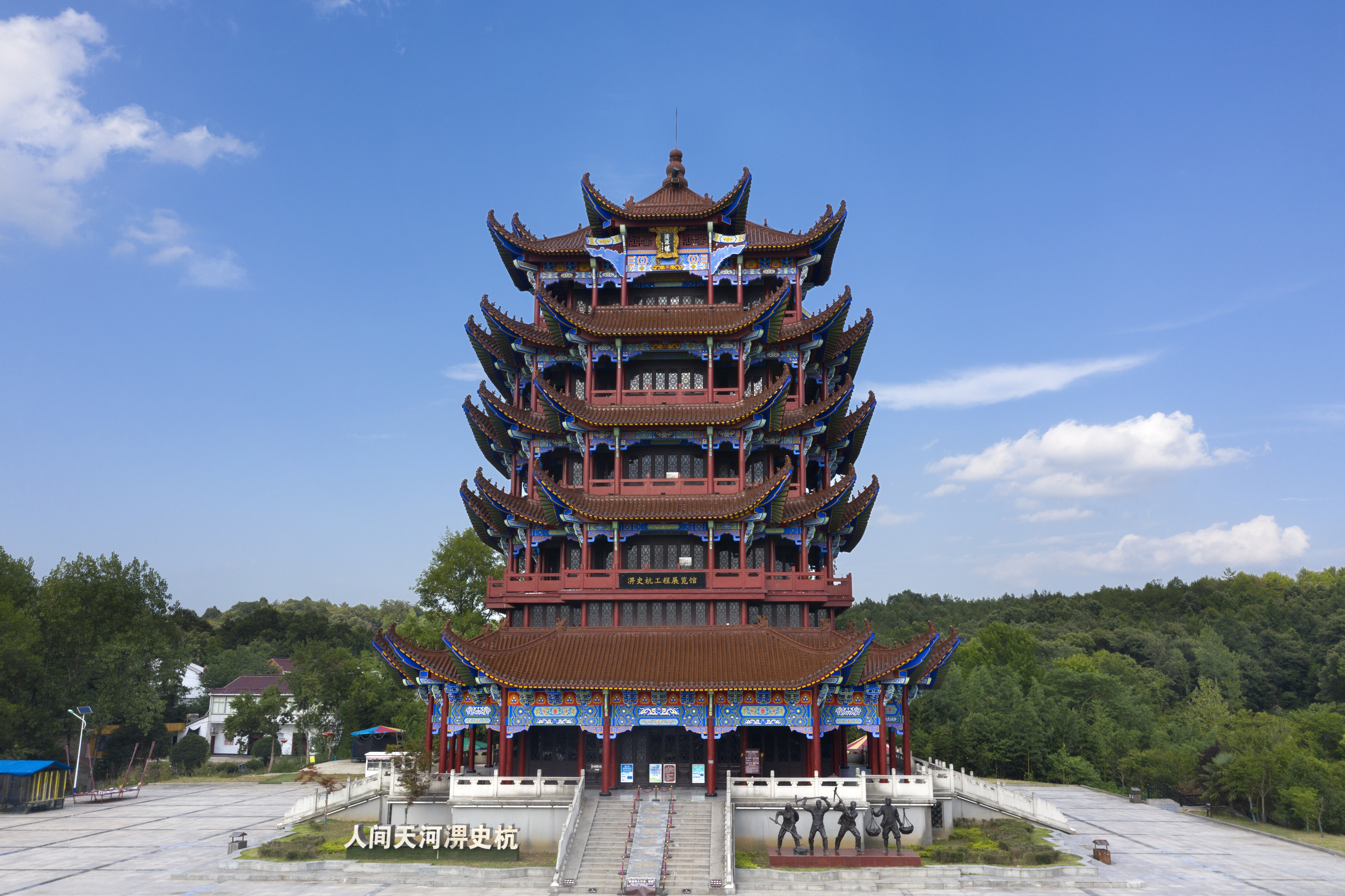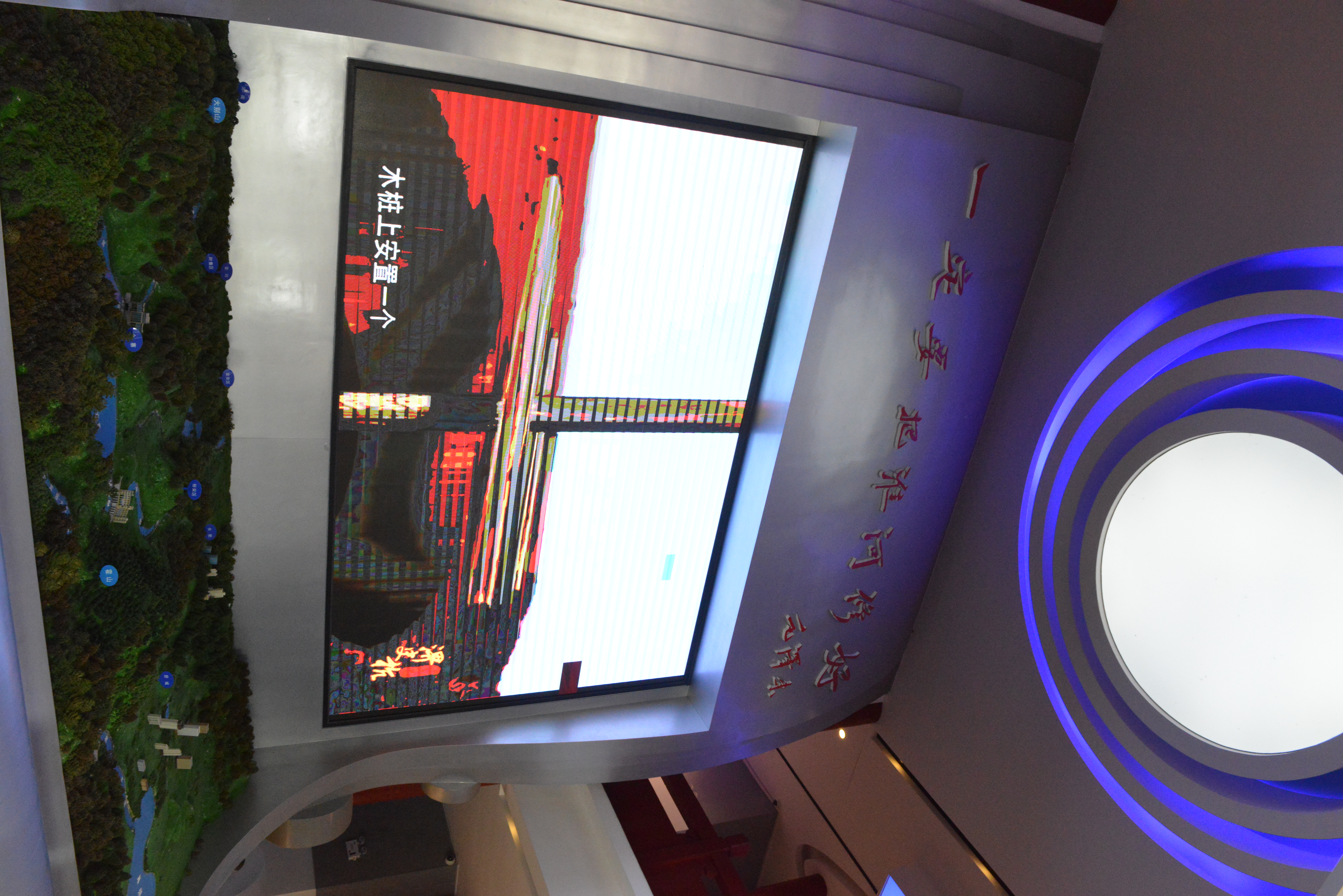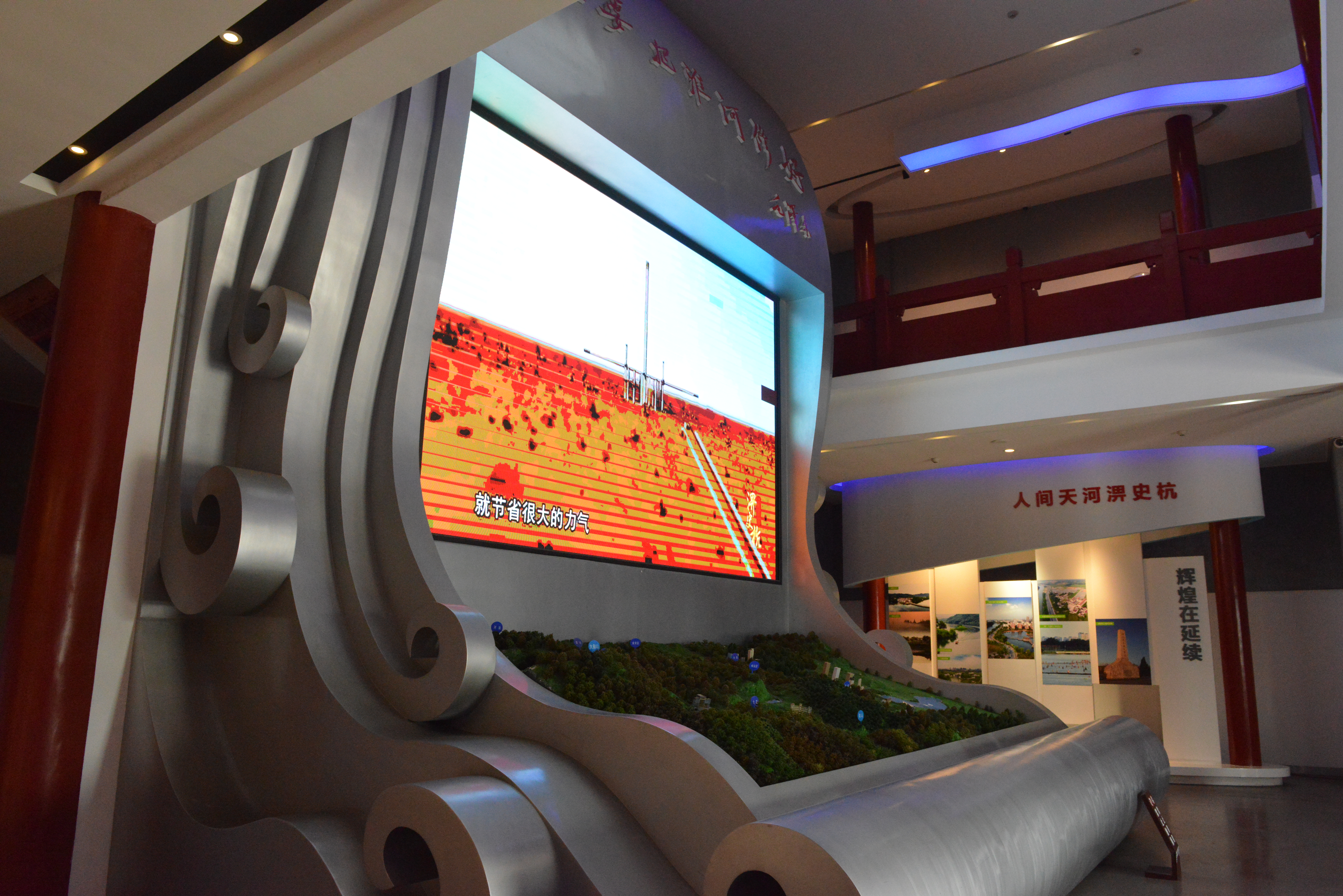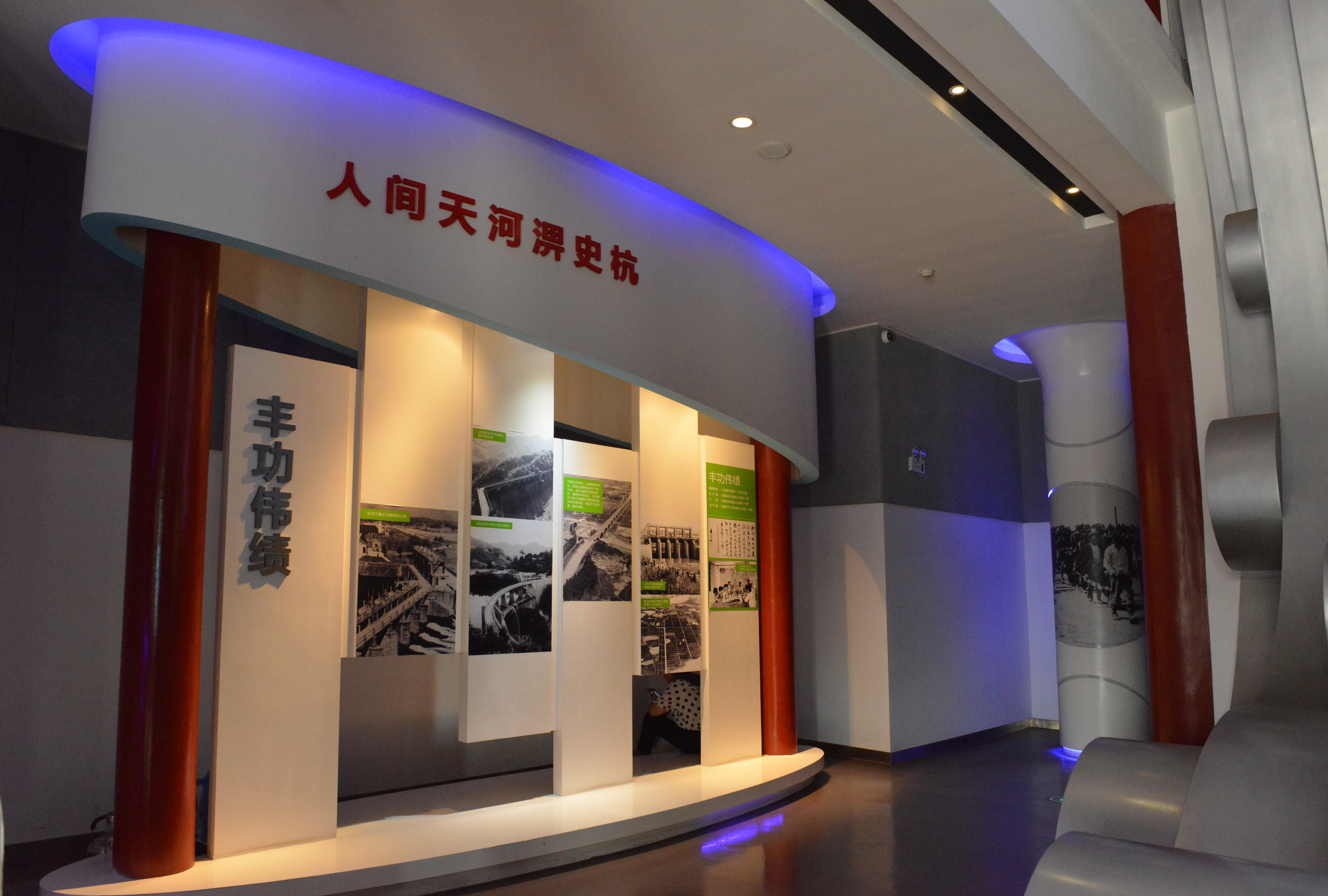 淠史杭工程展览馆位于六安市裕安区苏埠镇横排头景区内,于1997年动工,2000年7月完工,共7层,总高30米,总建筑面积2000多平方米,布展面积1600多平米,整体布局分为“苦水”、“亲水”、“治水”、“乐水”四个部分,通过历史图片、实物、音视频和场景再现等方式,全面展现了淠史杭水利工程历史背景、规划设计、建设施工、效益发挥的历史瞬间。