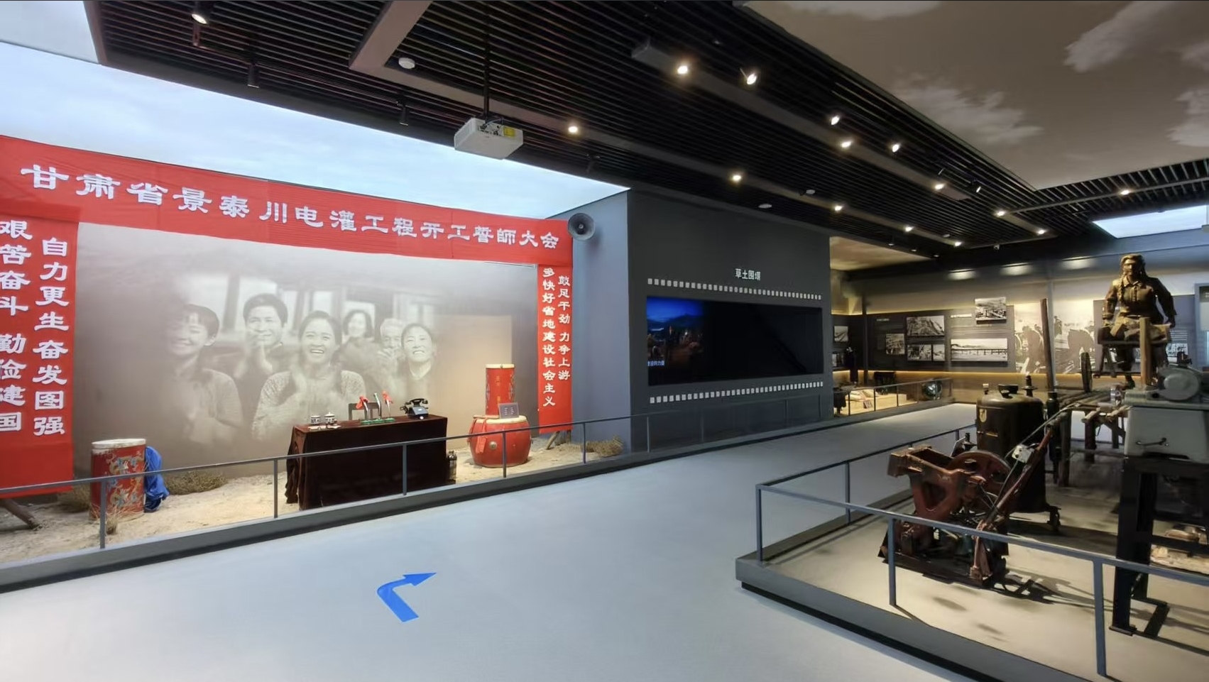 基地现有“砥砺陇原 水描锦绣”一个基本陈列,展览分为“水情纵览篇”“历史背景篇”“景电工程篇”等12个部分。基地精心收藏并陈列了上世纪50年代各类水利工程机械设备、文献资料等珍贵展品400余件,这些展品不仅是历史的见证,更是水利精神的载体。基地大量采用现代高新数字技术手段,将大型LED屏、L幕数字沙盘、幻影成像、互动触屏、互动打卡、科普装置等声、光、电技术有机融入展览展示的环节中,全方位呈现了水作为极为宝贵的自然资源,既是人类赖以生存发展的永恒基础,更是孕育伟大社会文明的重要源泉。