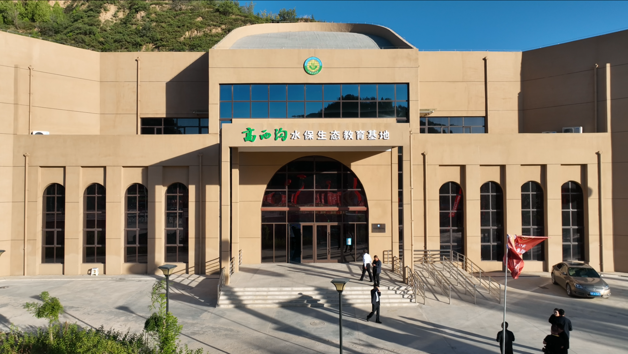 高西沟水保生态教育基地位于高西沟村龙头山山麓,基地分为上下两层,总面积2098.5平方米,建筑总高14米。