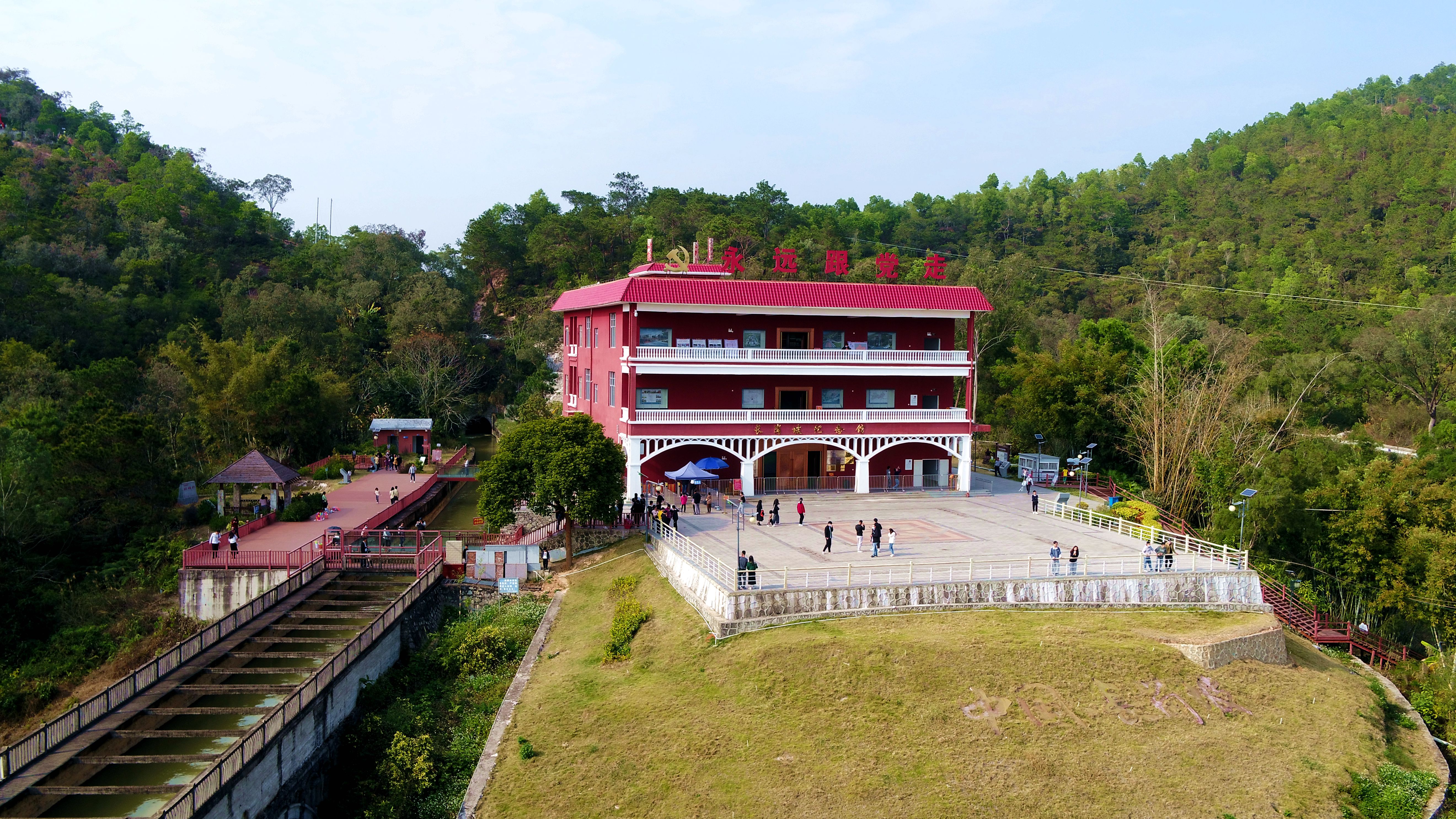罗定市长岗坡渡槽国家水情教育基地建设有占地约600平方米的展览馆,展览馆根据罗定市的治水历史、渡槽建设过程、精神提炼等巧妙融入高新技术、多媒体,影像互动、动态画面、触屏查询,让观展实现电影的情景化、信息传播的可视化。同时,建设了占地面积6600多平方米的研学实践基地“初心楼”,有培训教学、办公、餐饮、住宿、停车场及休闲运动等相关配套设施,设立了青少年学生红色文化教育主题的冬/夏令营活动、开设有亲子拓展培训、企业培训、研学教育等培训业务。另主要配套设施还有游客服务中心、长虹广场、观景平台等,已初步打造成为集休闲、观光、文化体验于一体的综合性旅游区。