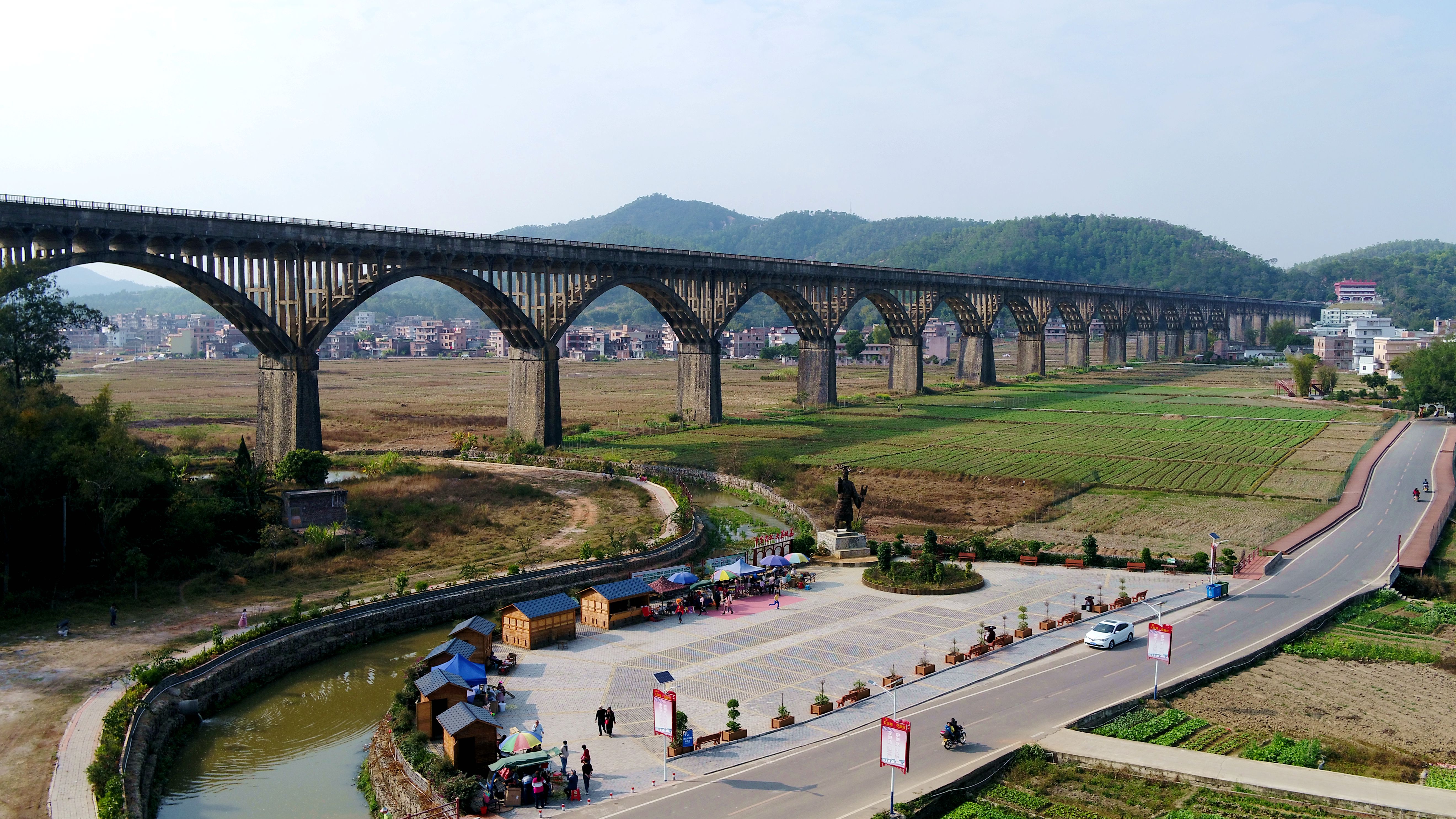 罗定市长岗坡渡槽工程于1976年11月动工兴建,1981年1月竣工通水,渡槽长5200米,槽身宽6米,高2.2米,其中钢筋混凝土槽长3450米,砌石拱槽长1750米。渡槽为连拱结构,共132跨,最大的拱跨度达51米,最大高度37米,渡槽设计引水流量25立方米/秒。长岗坡渡槽是首批广东省红色革命遗址重点建设示范点之一,1994年6月公布为罗定市第二批县级文物保护单位;2012年10月,被广东省文物局列为第七批广东省文物保护单位;2019年10月入选第八批全国重点文物保护单位;2021年1月被列为第四批国家水情教育基地;2025年2月获评为国家3A级旅游景区。