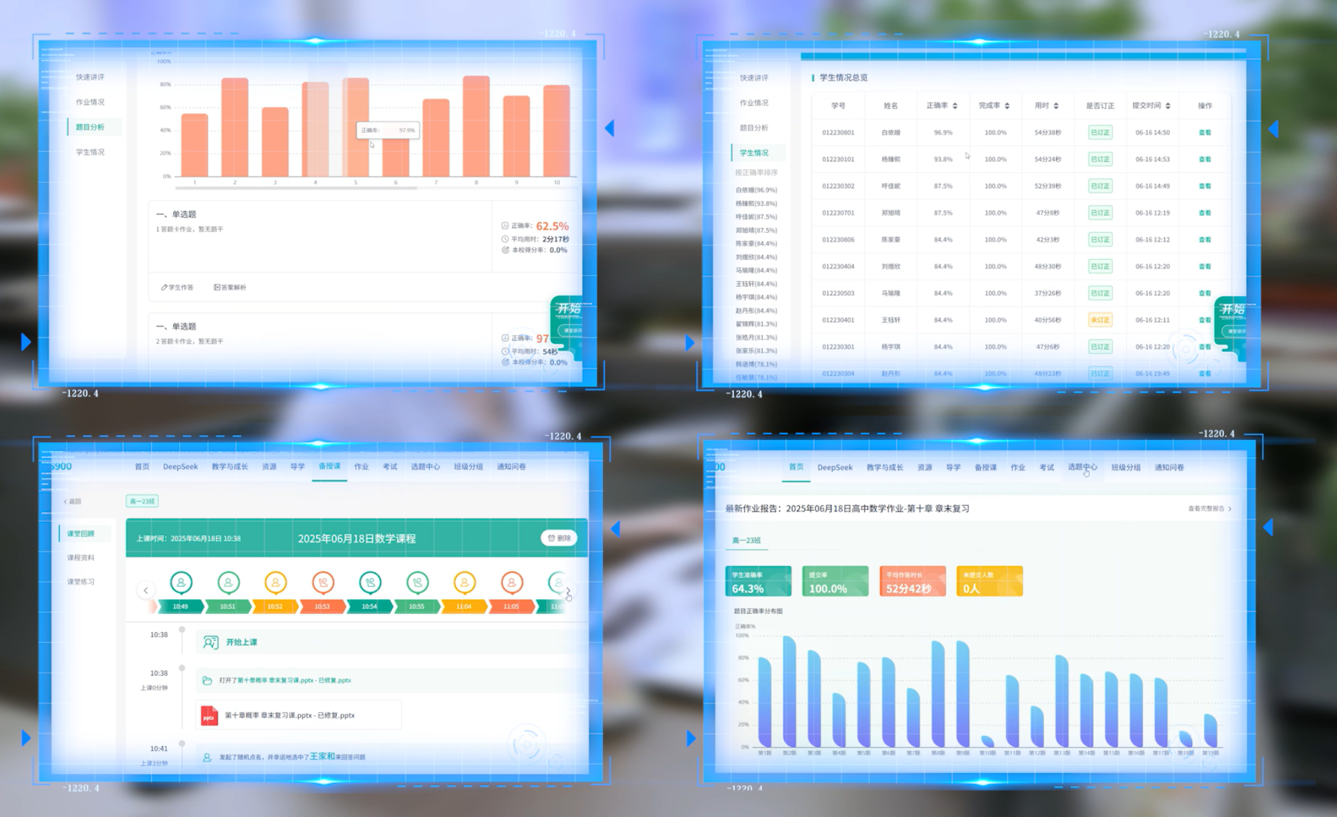 S900产品则更加注重课堂侧重于智能学习数据的统计和分析。它能够记录学生学情,实时追踪学习进度,并为学生提供权威且全面的教育智库支持。无论是知识点总结归纳,还是个性化学习方案的制定,S900均能做到精准高效,让学生的学习之路更加顺畅。此外,它成功实现了教师、学生与机器三者的深度交融与协同发展,构建起学生端、教师端与家长端之间的无缝连接桥梁,不仅强化了教育教学的互动性,更在教育教学过程中发挥了全面而精准的督导效能监督指导作用,成为推动县域中学教育质量提升的关键所在。