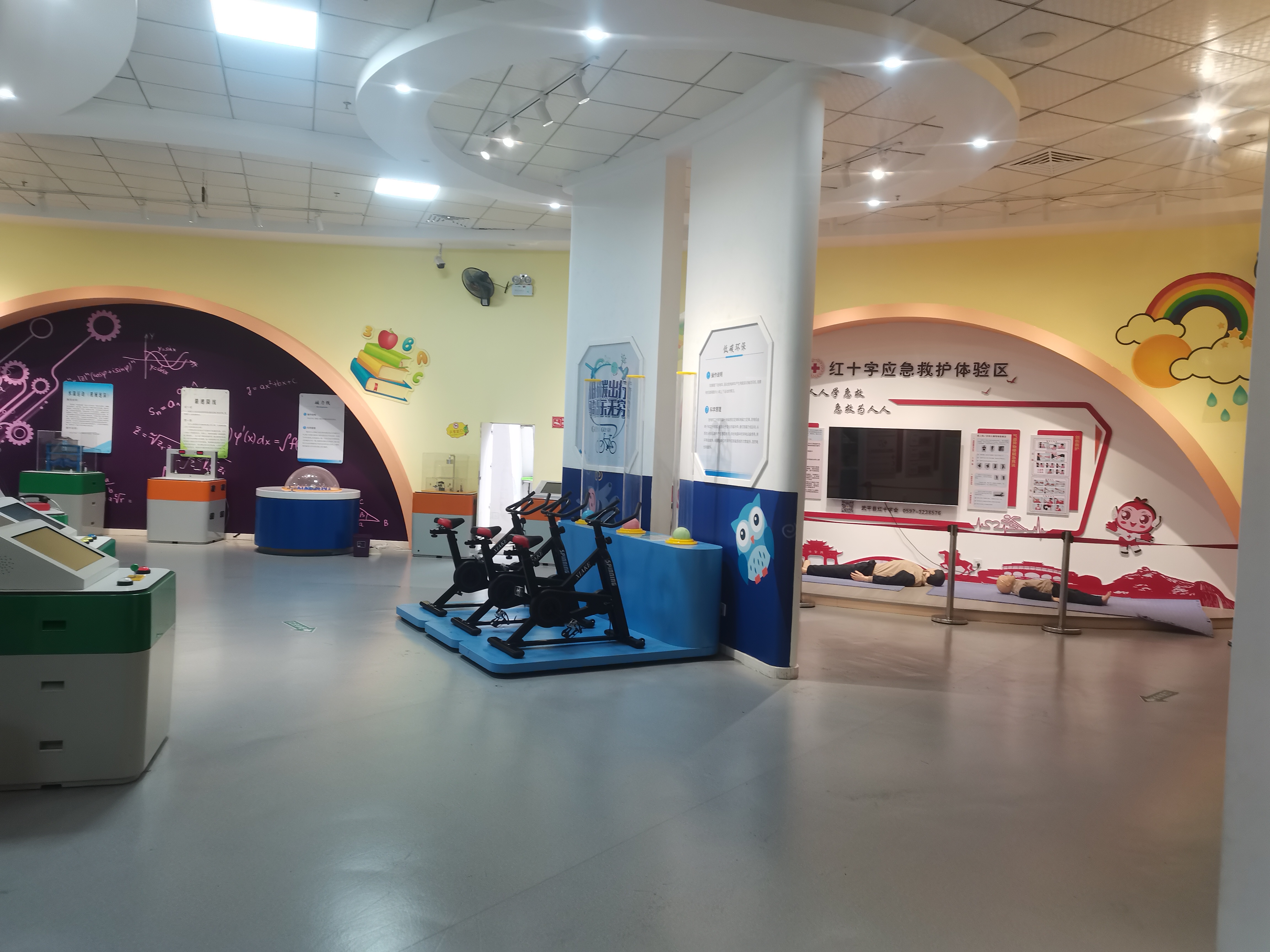 科技馆共有8大功能展区,分别由序厅、儿童科技展区、基础科学展区、VR体验中心、碳中和展区、前沿科技展区、红十字应急救护体验区和安全文化示范体验区组成。