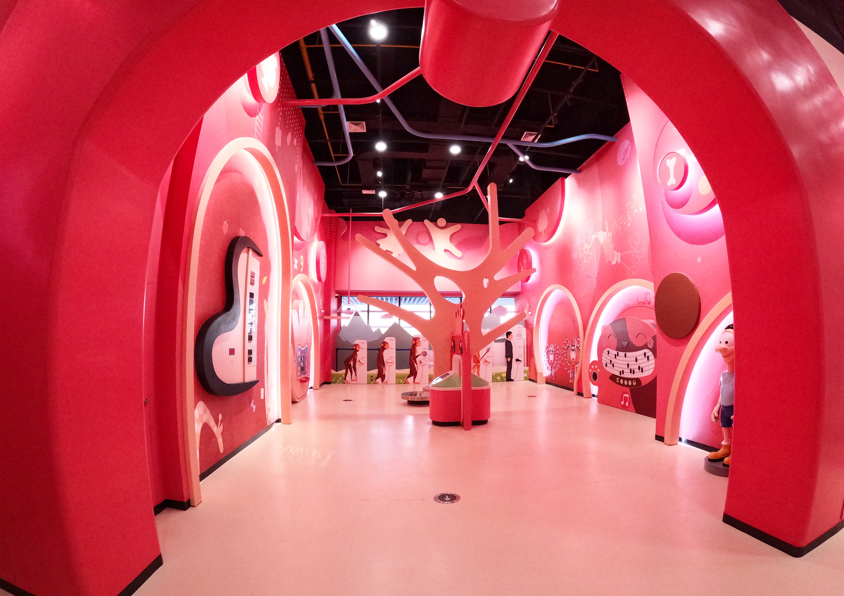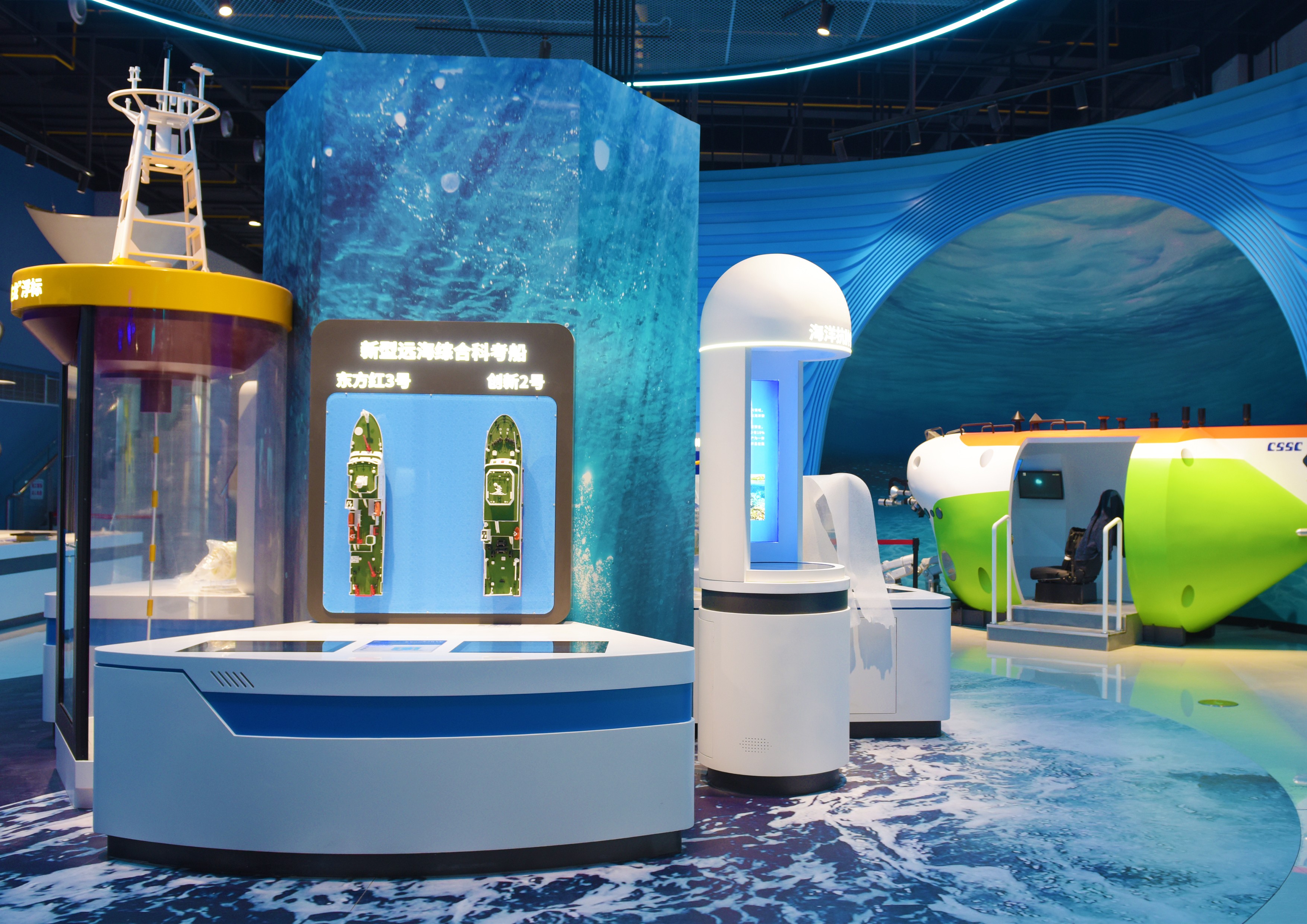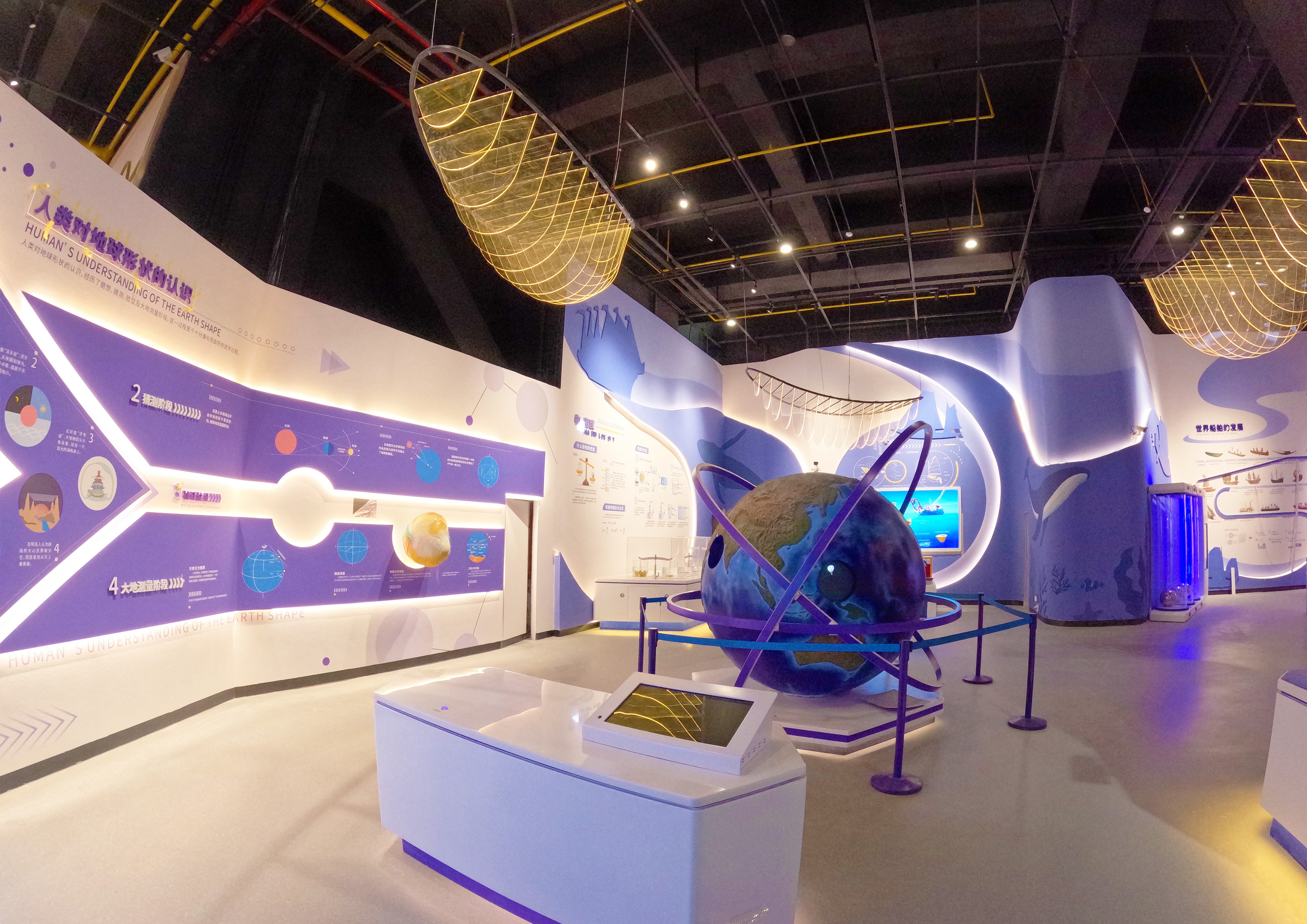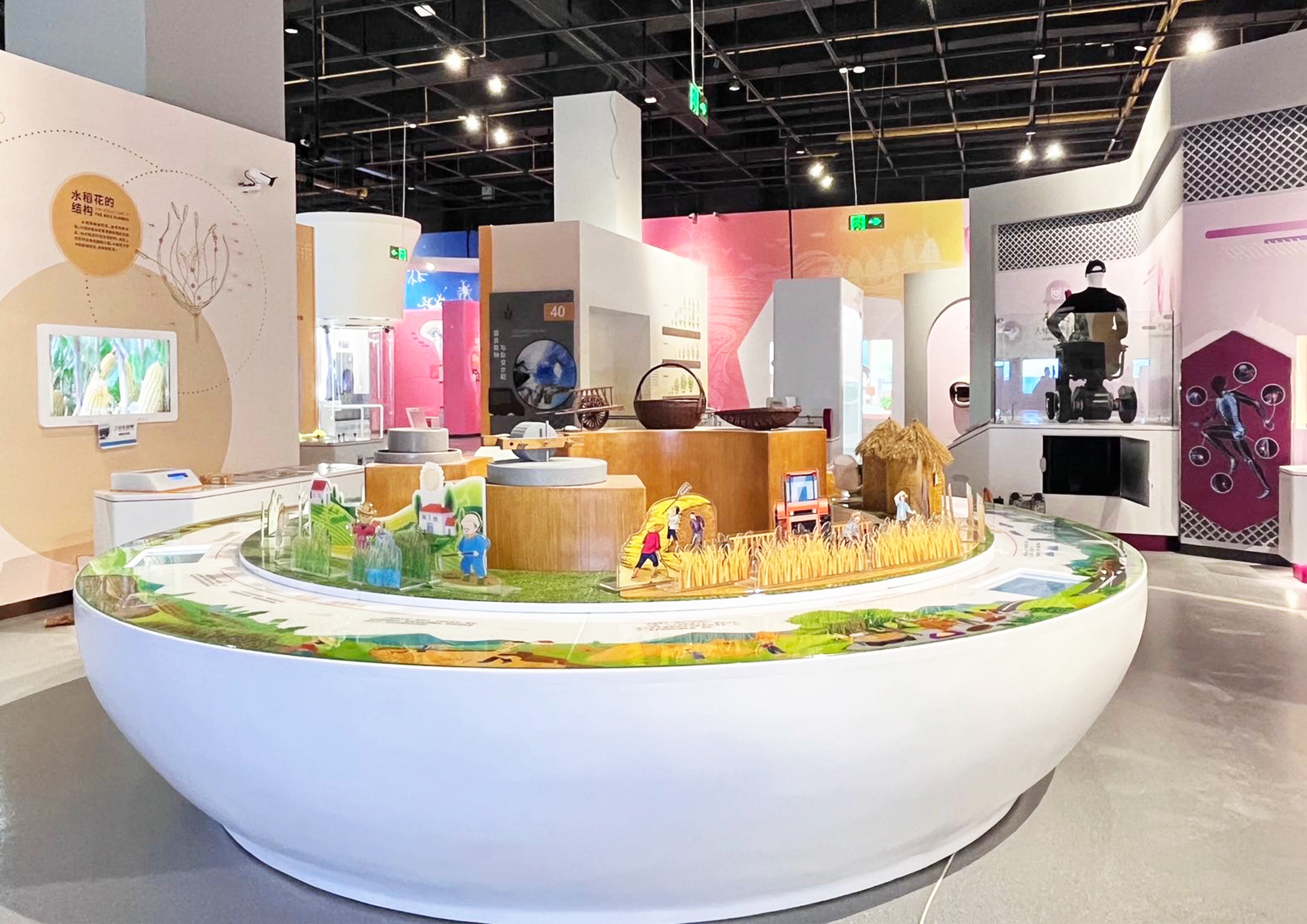山东省科技馆展览教育区内布展和展品按照“传承、启迪、实践”的理念,以科技发展历程及趋势为主线,采用国内独创的“多节点、小主题”布展思路,选取人类科技发展进程54个重大科技事件作为核心展示节点,共设800余件展品,既传承了国内外科技馆优秀的经典互动展项,又创新性地加入了沉浸式多媒体空间、3D打印、VR演示等最新展示技术;其中互动体验类展品80.2%,多媒体展示类11.8%,静态展示类展品8%,创新展品30%以上,中国特色的展品25%以上。