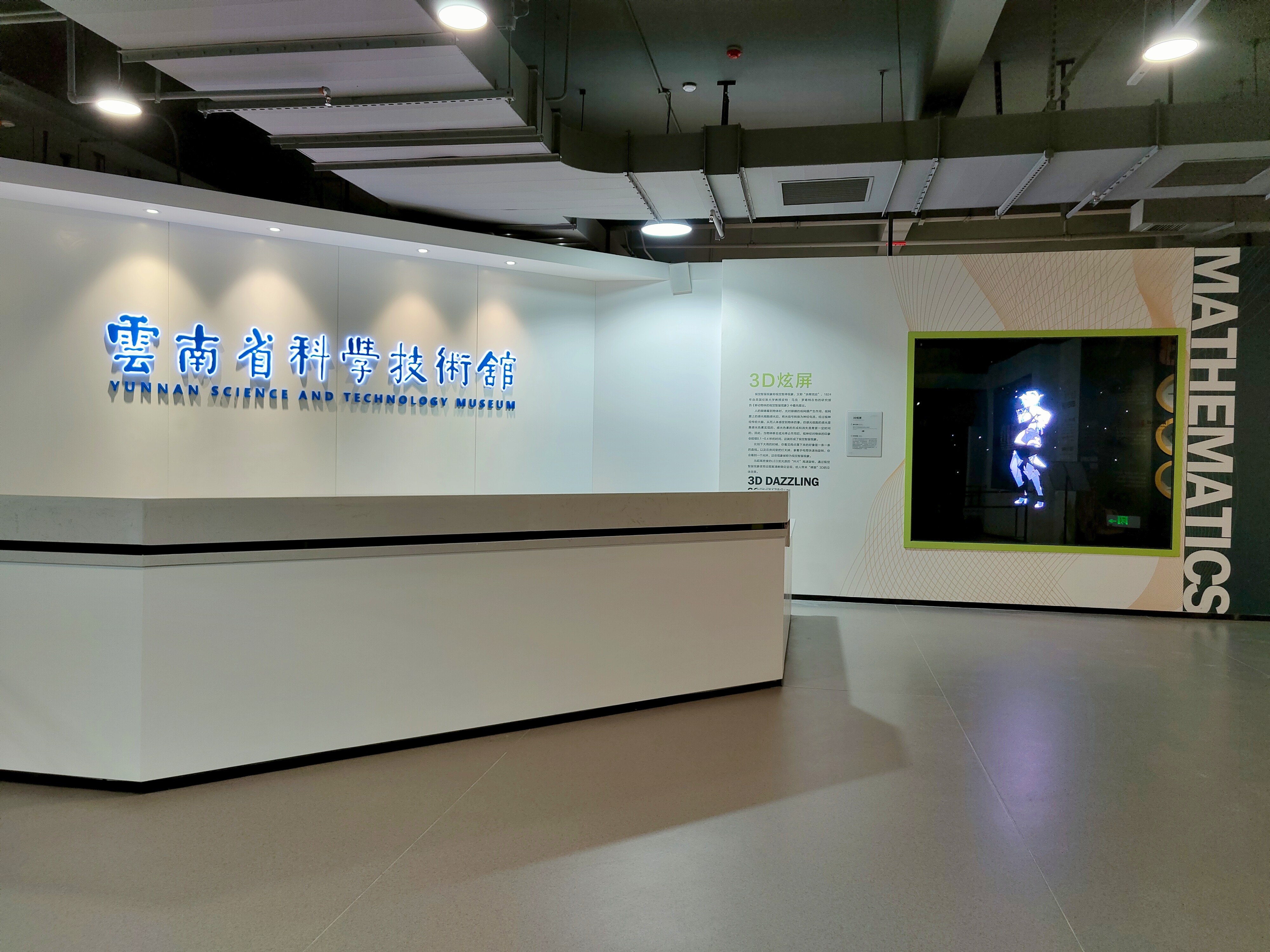 云南省科学技术馆是全国和省级科普教育基地,具有科普展教功能的重要阵地,是面向青少年和公众开展科普展览、科技培训、科普教育等科普活动,组织互动性科普类型的报告、讲座、影视等教育活动以及科学实验等实践活动的重要场所。目前常设展厅1800平方米,互动展项96件。