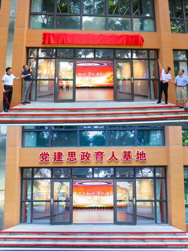 党建思政育人基地位于行政楼一、二层,占地1330.56平方米,是立体化呈现党史校史融合育人的重要平台。一楼展馆由“璀璨的中华文明”“光辉的奋斗历程”“广东红色印记”等8个板块组成,展陈内容展现了中华文明的赓续与党的奋斗历程,也展现了学校在落实党的全面领导,确保党的教育事业始终沿着正确方向前进的生动实践。二楼展馆由“创始人”“历任领导”“传承沿革”“领导关怀”“党建引领”等14个板块组成,以沉浸式展陈方式,呈现了学校二十载办学历程、办学成果与育人成效,通过丰富的图文资料和实物展品,直观展现了学校在人才培养、科研创新、社会服务等方面取得的成果。