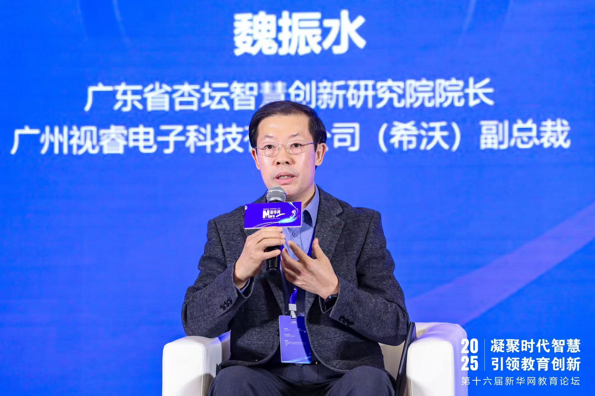 新华网北京12月15日电 11日,以“凝聚时代智慧 引领教育创新”为主题的第十六届新华网教育论坛在京举办。在下午的基础教育分论坛上第二阶段活动中,广州视睿电子科技有限公司(希沃)副总裁魏振水在圆桌上同与会嘉宾围绕《赋能与重塑:寻找人工智能背景下的教育锚点》话题展开深入探讨。