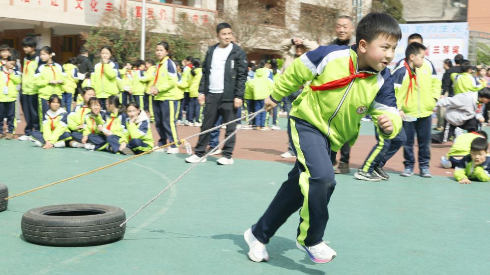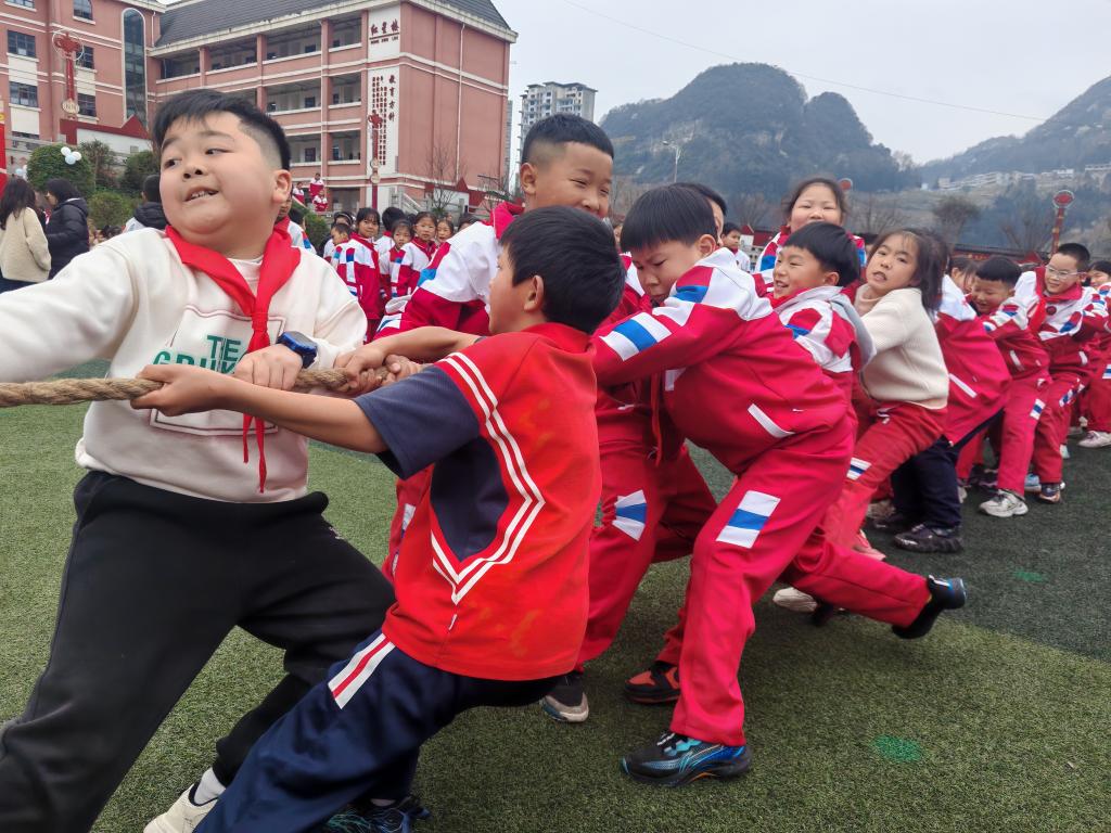 在织金县第八小学开学趣味体育活动中,学生们正在拔河。受访者供图