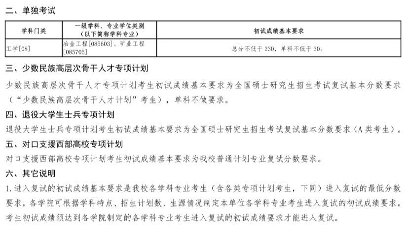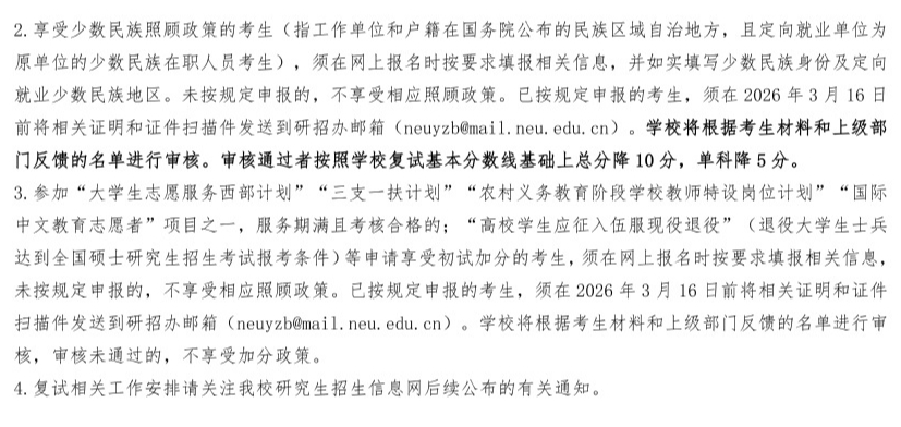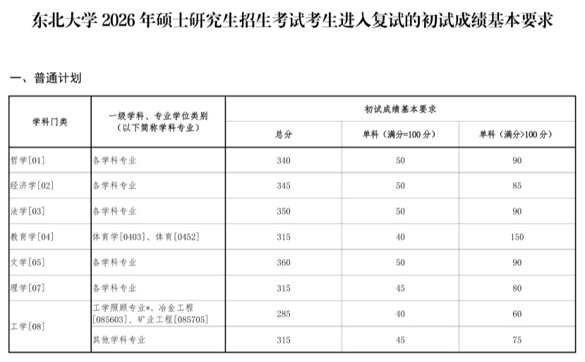 东北大学2026年硕士研究生招生考试考生进入复试的初试成绩基本要求